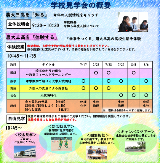 8月19日(土)に活動予定の部活動です。見学の際の参考にしてください。