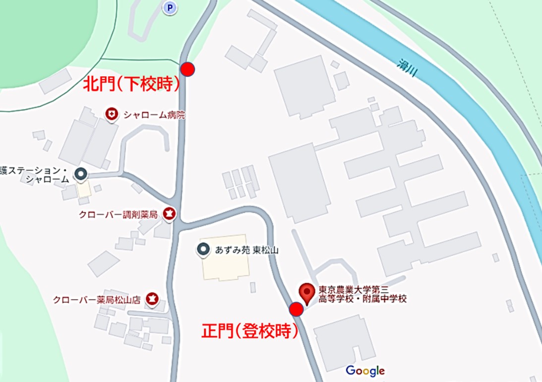 ・スクールバスの発着が優先となるので、正門からの入構や正門付近での駐停車はできません。