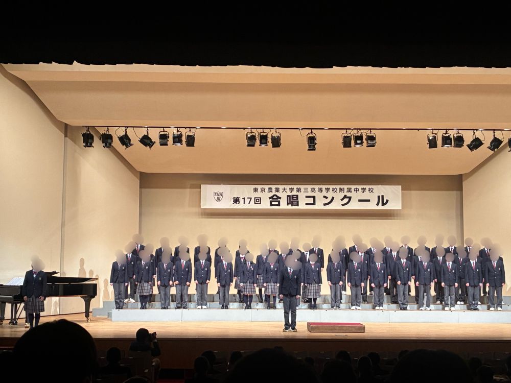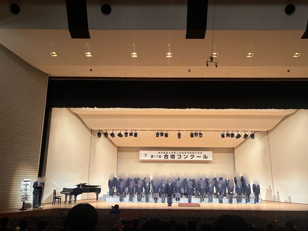 中学校の第17回合唱コンクールが東松山市民文化センターにて行われました。各クラスのクラス合唱、学年合唱と中学生たちは全9曲を熱唱。今年から新企画として学校全体での全員合唱も実施しました。全員合唱は来年3月の卒業式でも行えれば、と感じています。限られた時間の中で練習を経ての本番では、各クラスとも力を出し切った感動的なひと時でした。1~2年生は優秀賞、3年生は最優秀賞が、教員代表の審査員と来場した保護者の皆様の投票により選ばれ、コンクールの最後に教頭先生から表彰状とトロフィーを授与され、中学校生活の新たな思い出の1ページが刻まれたことと思います。