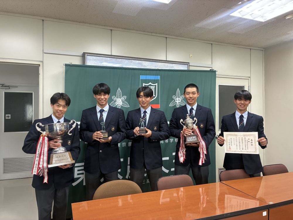 昨日まで実施された野球部三校リーグの表彰状等を持ち、野球部員の皆さんが校長室に来室。優勝の賞状、理事長杯、学長杯、最優秀選手賞、最優秀投手賞など多くの賞を受賞しました。チーム全体と個々の選手の努力の積み重ねが、こうした嬉しい結果につながったものと思います。今後、いくつかの練習試合をこなし、オフシーズンに入るとのこと、そこでも努力を重ね、来春にシーズンインした時、精神的にも身体的にも一層強いチームに成長していくことを楽しみにしています。
