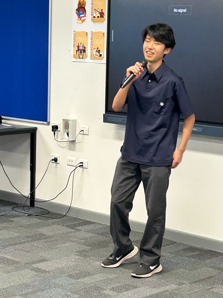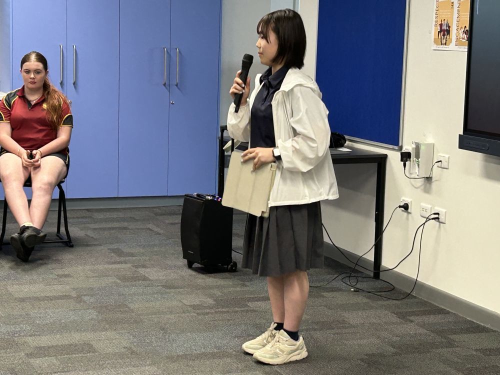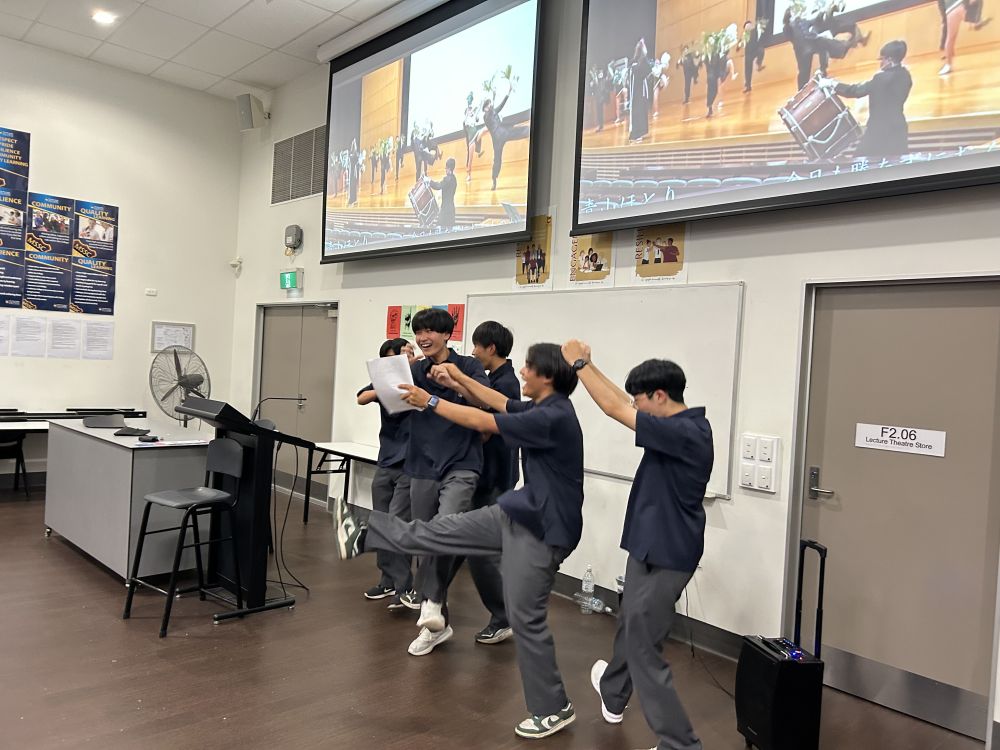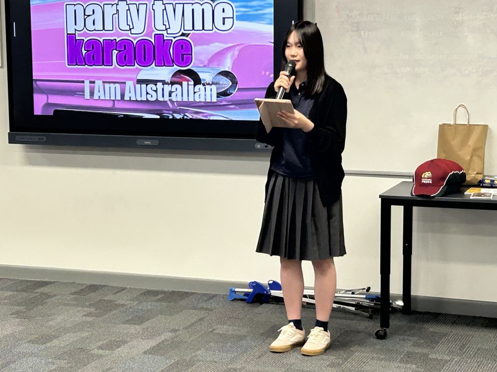 クイーンズランド語学研修は10日目を迎え、丸一日過ごせるのも最後となりました。午前中はバディと共に現地の授業に参加しました。オーストラリアは日本とは違って新学年の始まりは1月でまもなく1学期が終わり、2週間のイースターホリデーに入ります。生徒が参加した授業の中には学期末試験の結果を伝えるものもありました。午後はお別れ会が行われました。日本で準備した漢字当てクイズや大根踊りを披露すると会場は大盛り上がりで現地の生徒も踊りの輪に加わりました。最後に今回の研修で学んだことやバディへの感謝の気持ちを一人ずつ英語で発表し、会はお開きとなりました。明日は家族の待つ日本へ帰国します。
