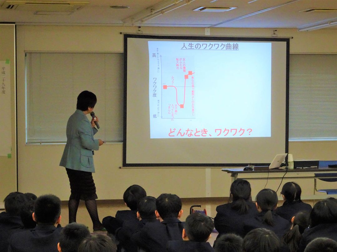 6年間を通して多くの講演が行われるのも、農大三中のキャリア教育の特長です。中学1・2年では、人間について考えを深める内容、中学3年から高校2年では、大学生や社会で活躍する卒業生を講師に迎えての講演、高校3年ではさらに視野を広げる内容といったように、進路ステップに合わせ多彩な講演を実施。高い志を持ち活躍する多くの方々の講演は、豊かな可能性に気づきを与え、進路選択の道標となります。