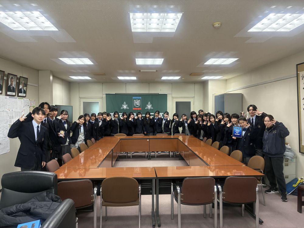 昨日の大会で全国大会出場を決めたダンス部員が校長室に来室。1位通過を賞する盾、もう1チームが受賞した「グッドスピリットチーム賞」の盾を持ってきてくれました。優勝するだけあって部員の皆さんの礼儀正しさには驚きです。部長さんに一言求めると「感無量です」との一言。その言葉には、3月25日に幕張で開催予定の全国大会に向けての秘めたる思いを感じました。さらなる大きな飛躍を楽しみにしています。
