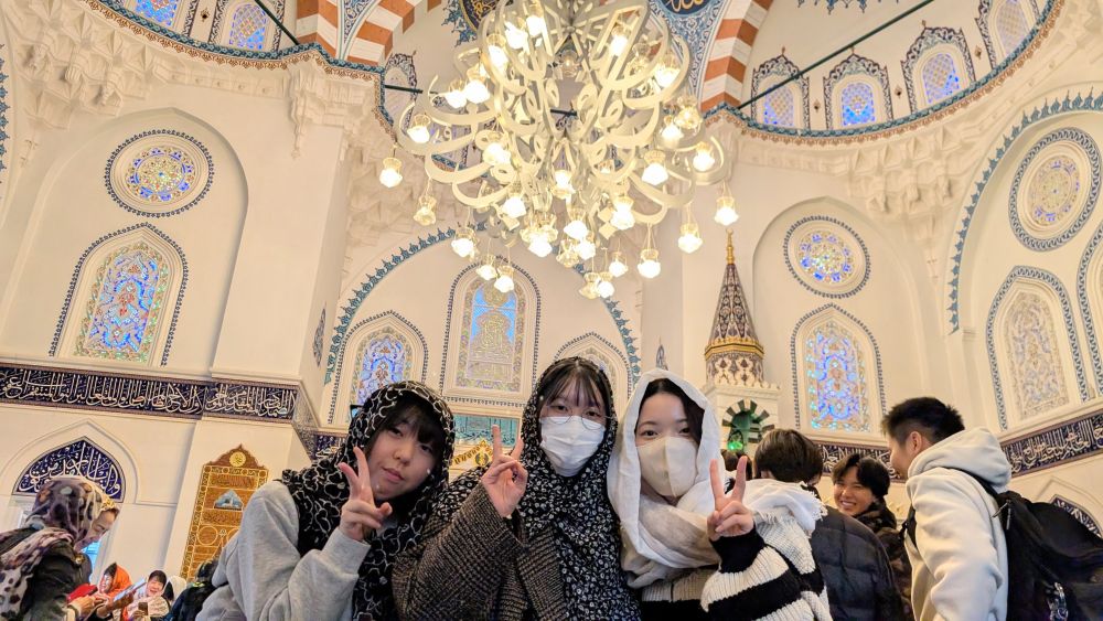 東京ジャーミィーでは、イスラーム教はイスラーム文明についての話をうかがい、その後は美しいモスクの見学をしました。見学後にはハラールマーケットでおみやげも購入しています。