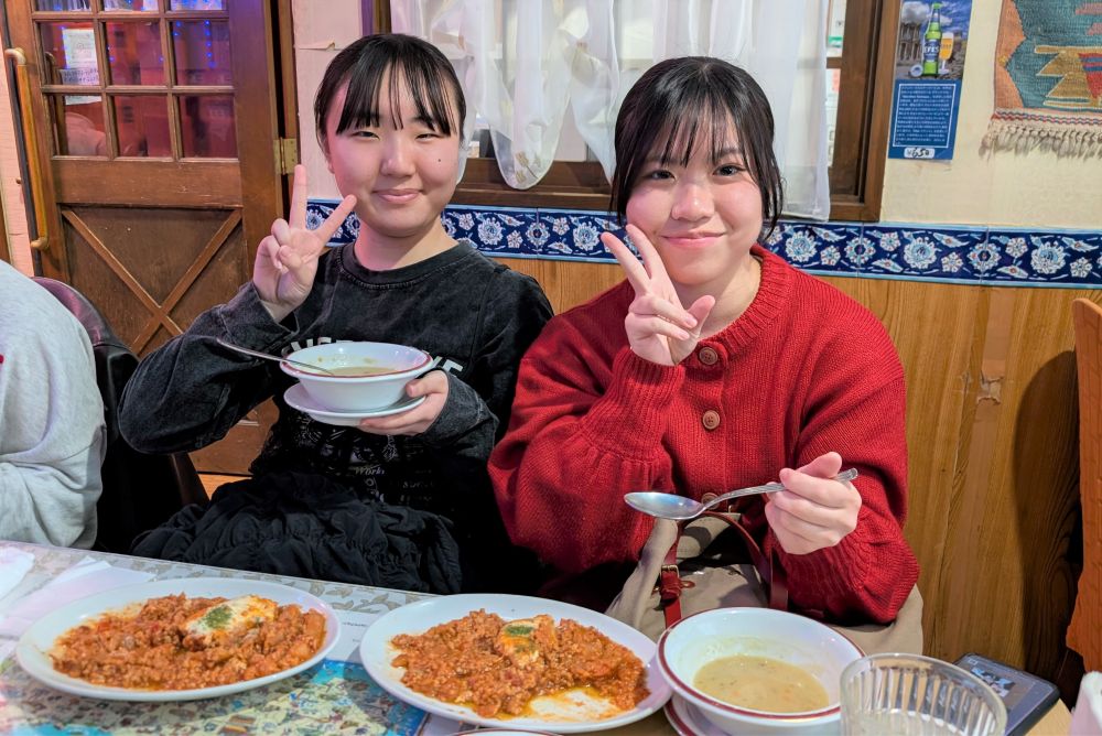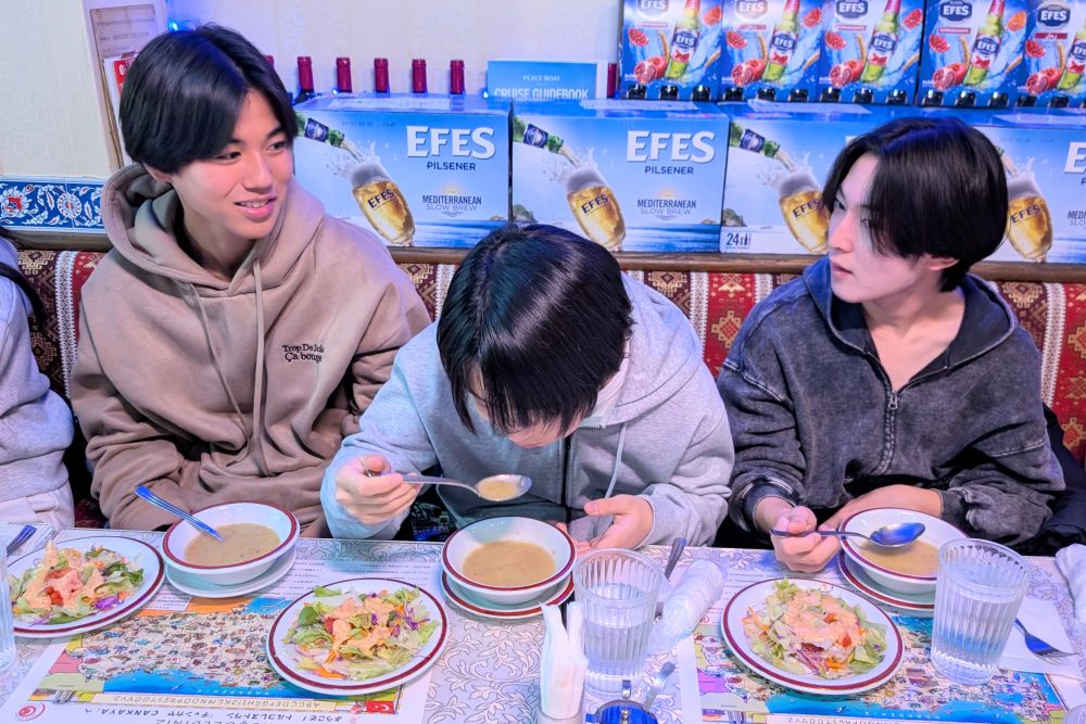 食事はトルコ料理を食べました。チキンケバブ、イスケンデルケバブ、ひき肉のトマトソース煮込み、レンズ豆のスープ、ラフマージュン(ピザ)、トルコの紅茶など、生徒たちは初めて食べるものが多かったですが、とても美味しかったようです。