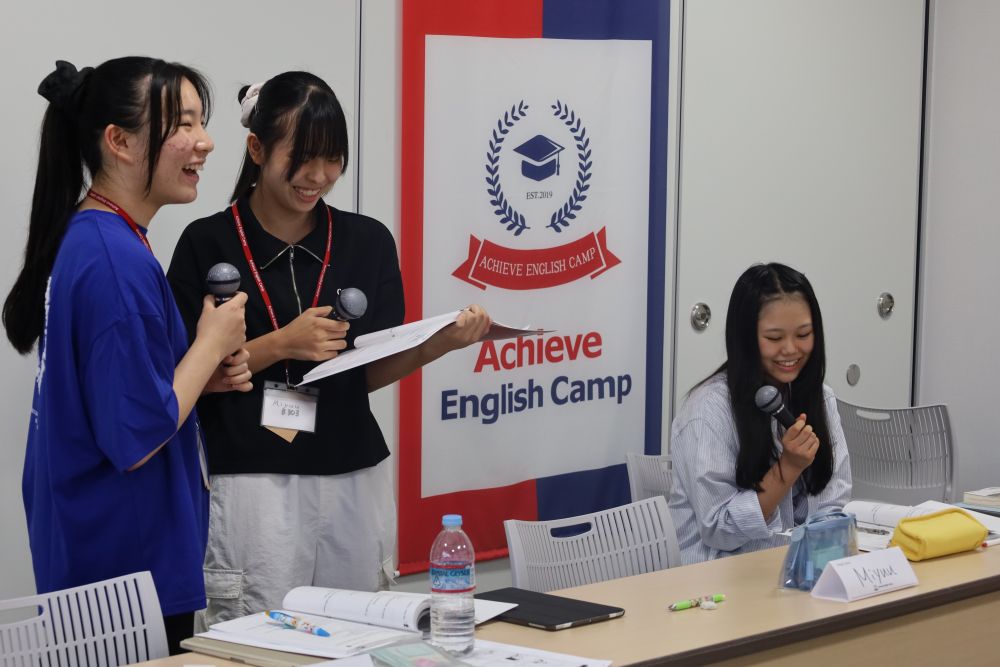 初日は緊張もみられ、日本語が出てしまう場面もありましたが、徐々に慣れてきて、3日目には英語で積極的に発言する様子が見られたそうです。また、生徒が他の生徒にインタビュー形式で会話を行う際には笑顔も多く見られたり、分からないところは講師に英語で質問したり、意欲的に英語学習に取り組んできました。